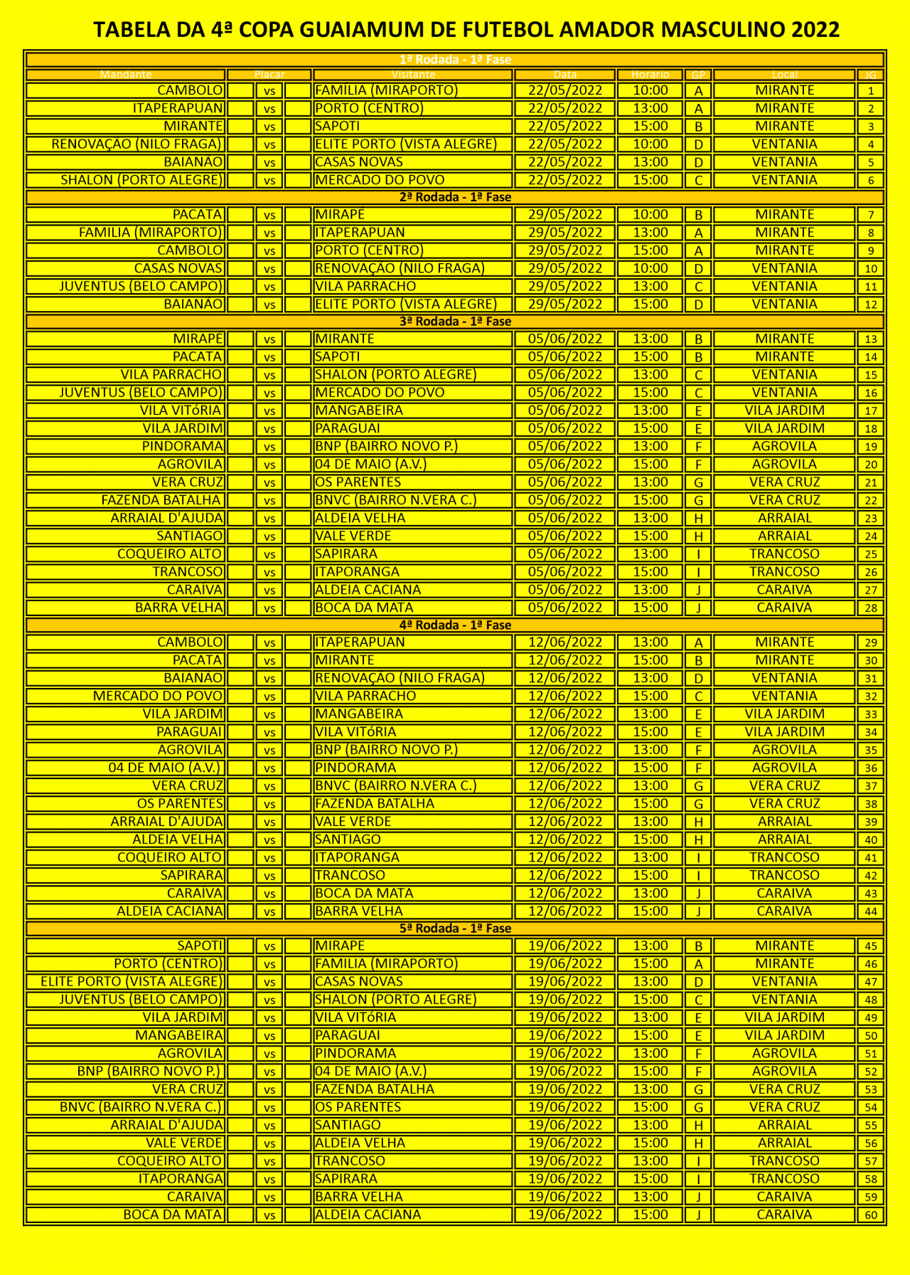 A COPA GUAIAMUM 2022 funcionará da seguinte forma.