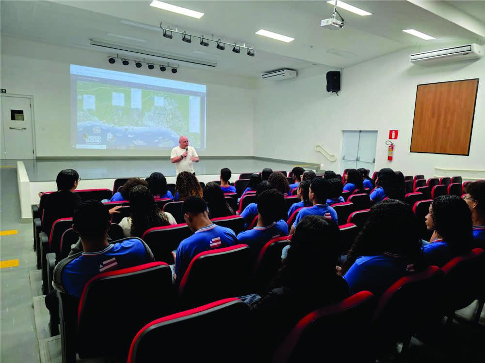 A atividade começou pela manhã, na escola, com uma palestra ministrada pelo secretário de Turismo, Guto Jones, e pela assessora especial da Secretaria de Turismo, Aline Rodrigues, que apresentou aos jovens o funcionamento da Setur, a importância da regulamentação da profissão, as responsabilidades do guia de turismo e o papel do setor como indústria limpa que gera renda, emprego e oportunidades. Também foram discutidos temas como sustentabilidade e os desafios de representar um destino que recebe milhões de visitantes todos os anos.